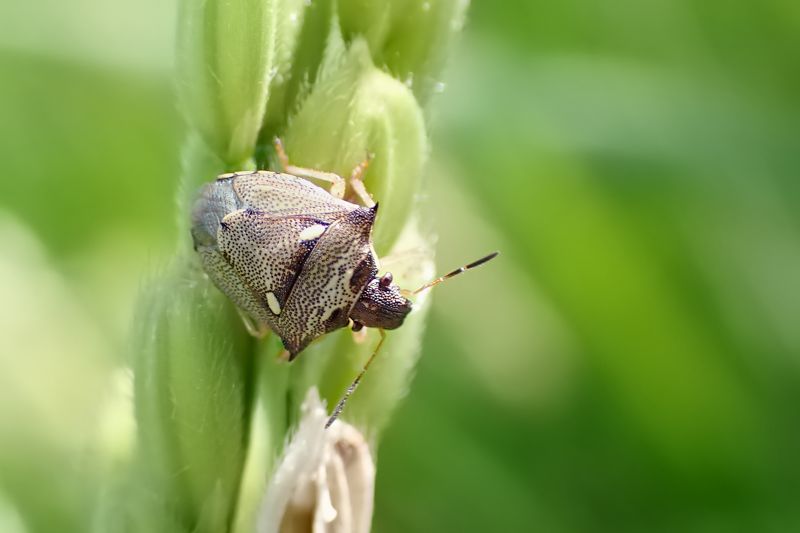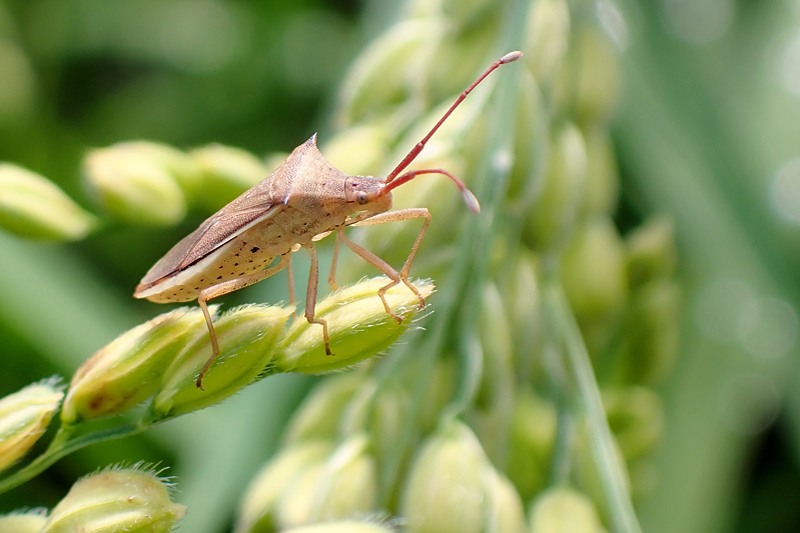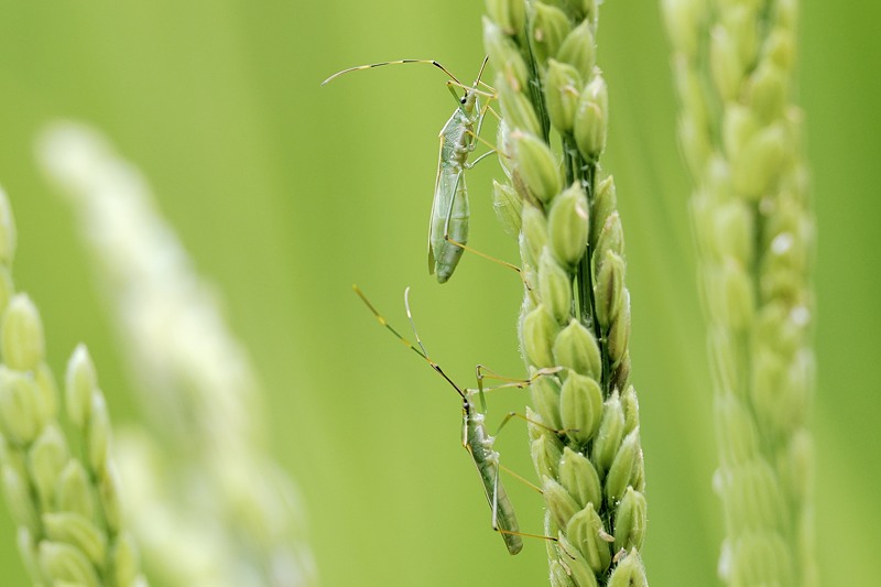 農薬フリーの田んぼはカメムシたちの楽園になっていた。お米の好きなカメムシの仲間は「斑点米カメムシ類」と呼ばれ、詐欺グループみたいに恐れられている。新米の汁を吸って白いお米を汚してしまうらしい。「お熱いのがお好き」な連中が多く、猛暑の影響で近年その生息数は増加していると言う。きょうもこの三種類だけでなく、多種のカメムシが水不足の田んぼを闊歩していた。