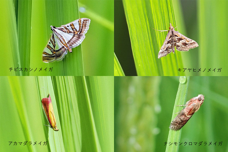 チビスカシノメイガ、キアヤヒメノメイガ、アカマダラメイガ、ナシモンクロマダラメイガ、アジアイトトンボ、ヒロオビジョウカイモドキ、アオドウガネ