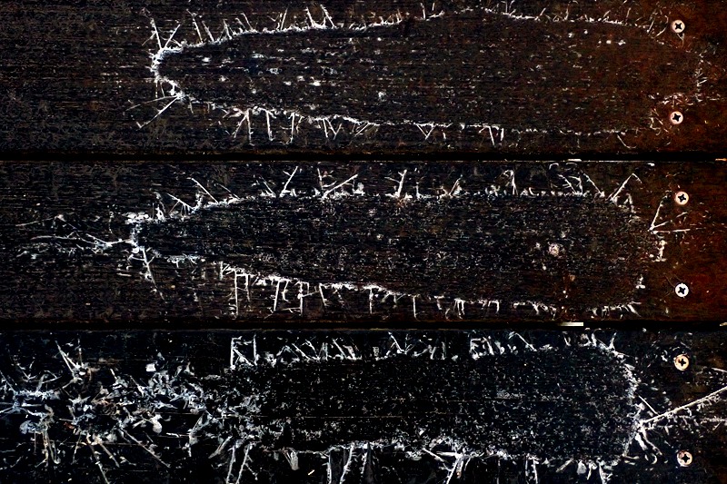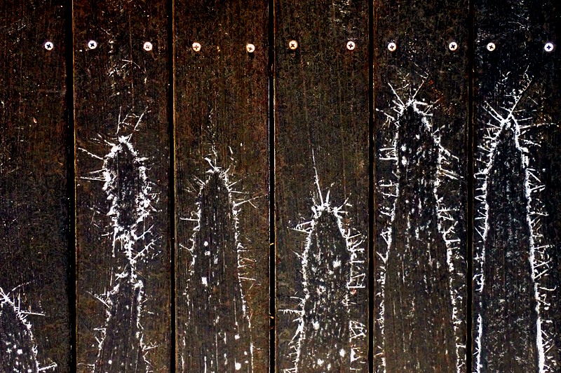 人々から非難され法的処罰を受けたり、そうかと思うと芸術性を評価され賞賛されたりする事もある落書き。今日、人の目を楽しませてくれた木道の落書きは、それは霜のしわざだった。あと1時間もしないうちに消えて無くなってしまう。だから少なくとも罰を受けることは無いだろう。でも、どうやったらこんな素敵なシュールな絵が描けるのだろうか。人間の目を意識しているとしか思えない。自然は時々こういうお茶目なところを見せる。
