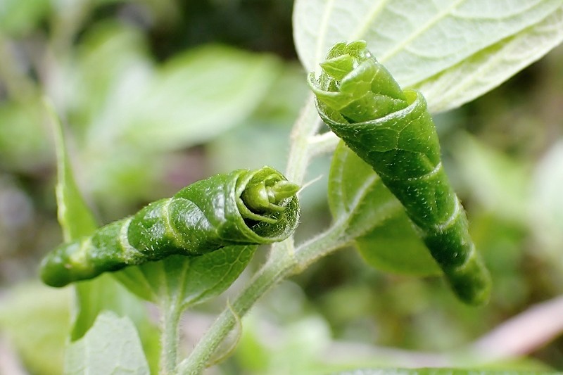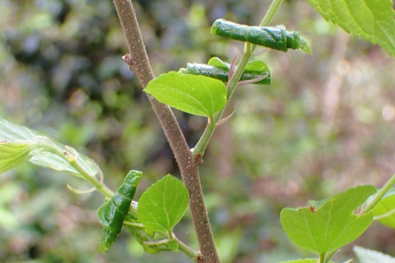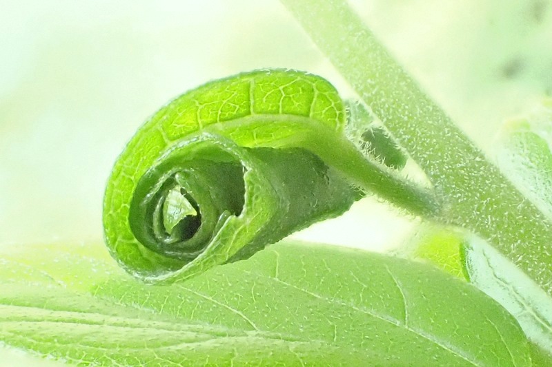 葉をふとんのように巻いて寝床にするのはイモムシたち常套手段でもあるが、さてどうだろうか。巻物の中身を確かめてみることにした。枝から形の良いのをひとつちぎり取った。そして興味津々に、恐る恐る、ドキドキ、ゆっくりと、巻物をひろげていった。
